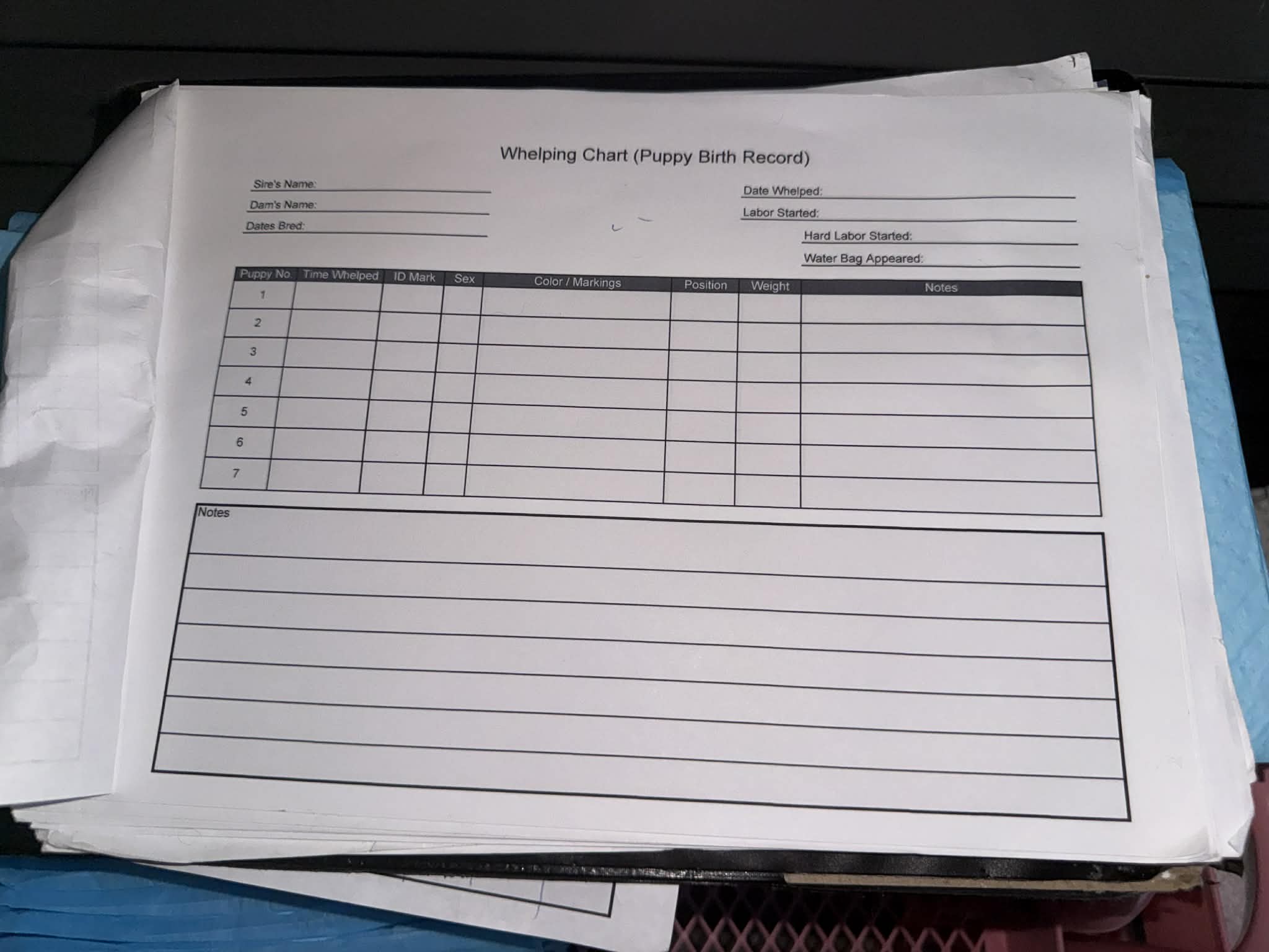 - Daily puppy weight checks with records kept to track progress